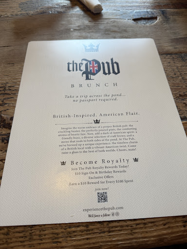 We have a great experience at The Pub! It was a busy Sunday night but we were seated outside immediately. The menu offers a wide selection of English staples. We opted to get the half sandwich half soup/salad and the sliders and salads were delicious! The location is also great, conveniently located right where the parking garage opens up. Highly recommend! - 3/16/2026