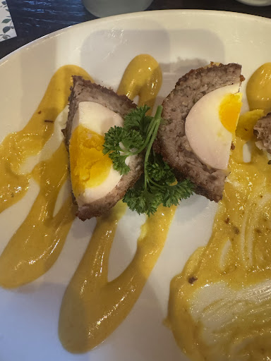 Everyone enjoyed their meal. Scotch eggs, fish and chips, Welsh dip, Cotswold. - 3/05/2025